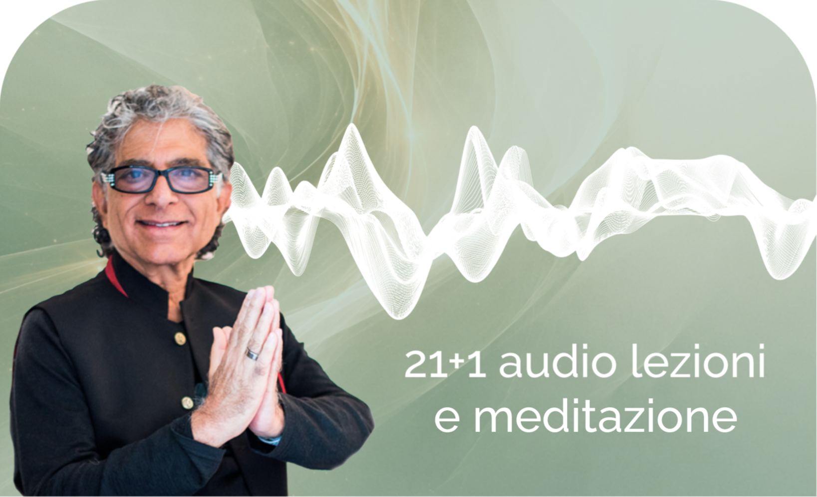 21+1 audio della durata di 25 minuti l’uno, guidati da Deepak: 10 minuti di lezione + 15 minuti di meditazione con la tecnica della ripetizione silenziosa del mantra.